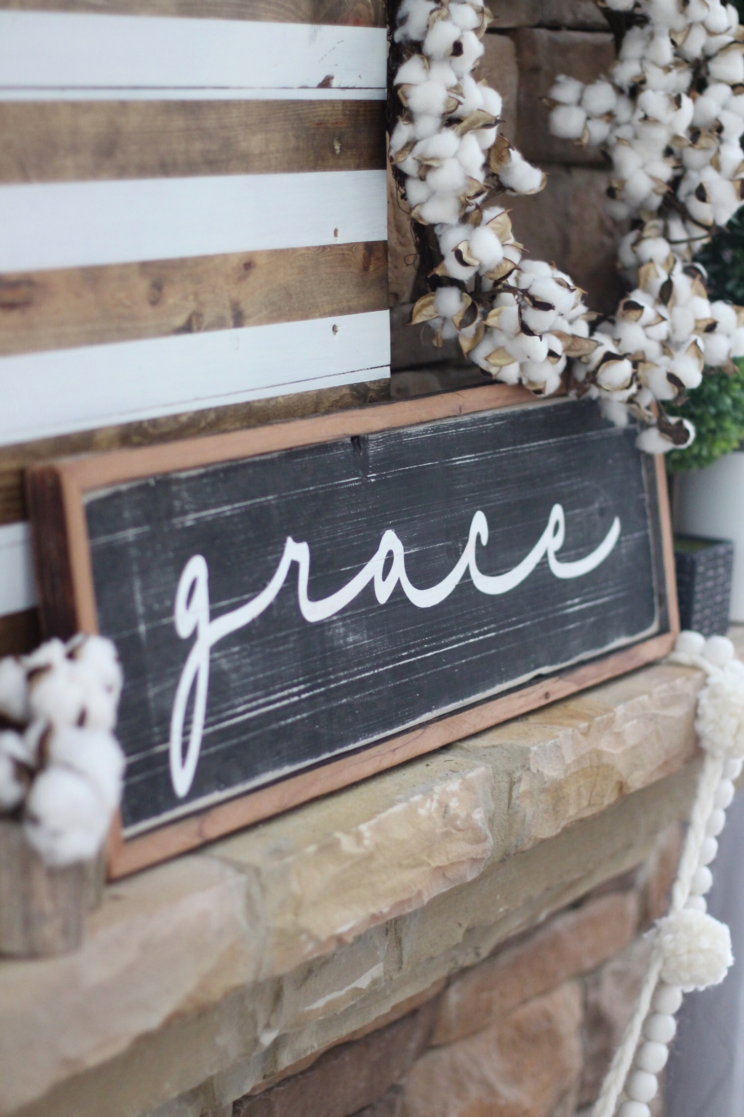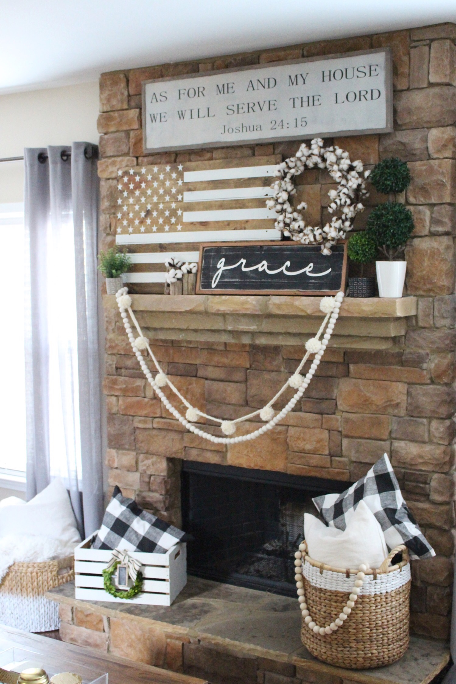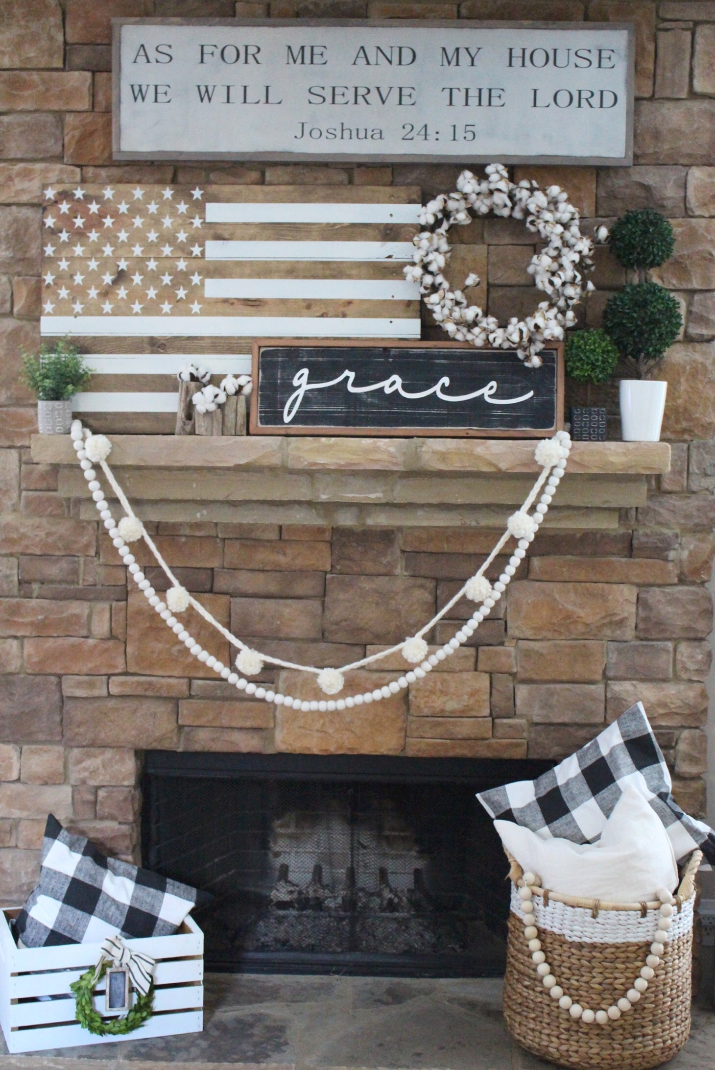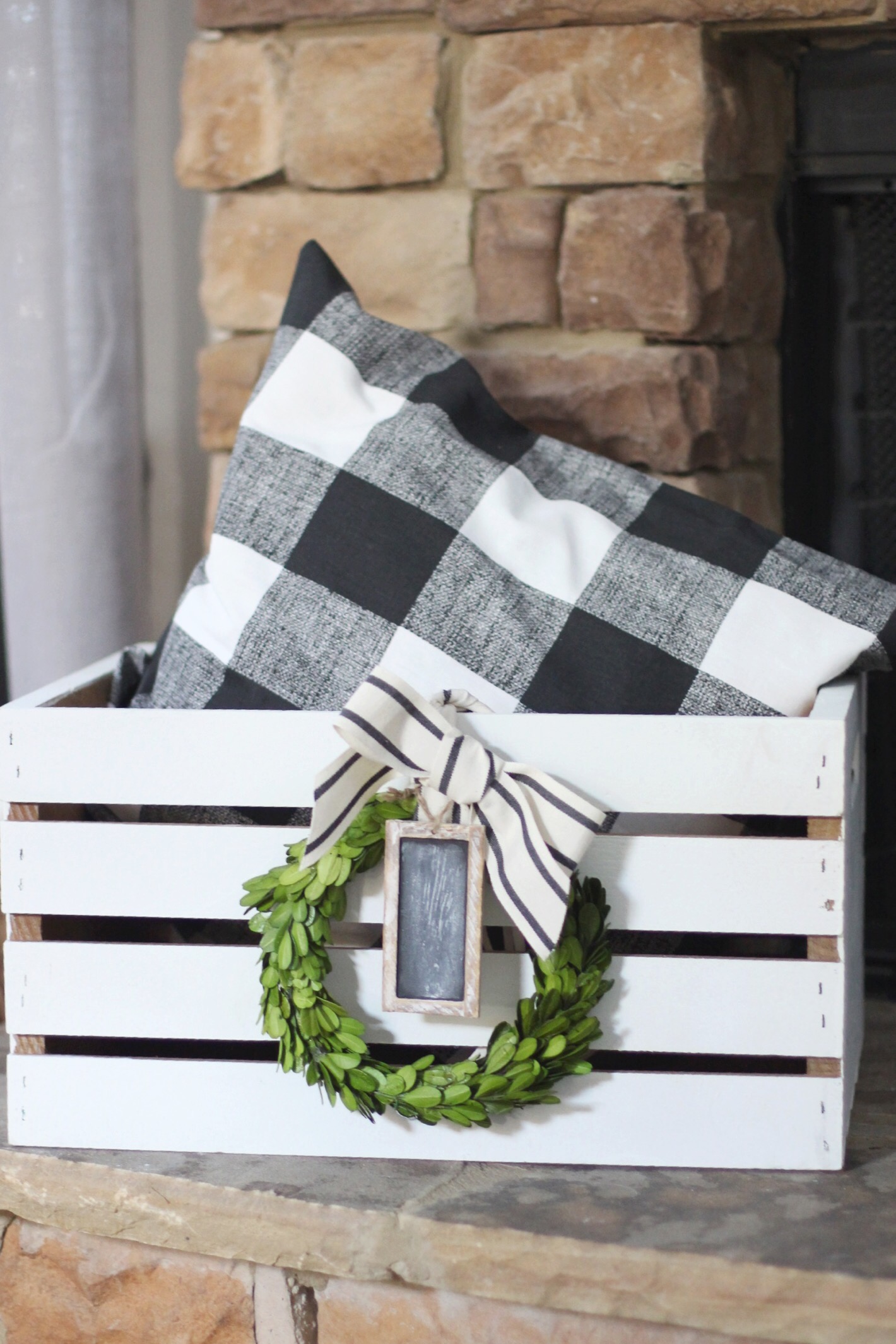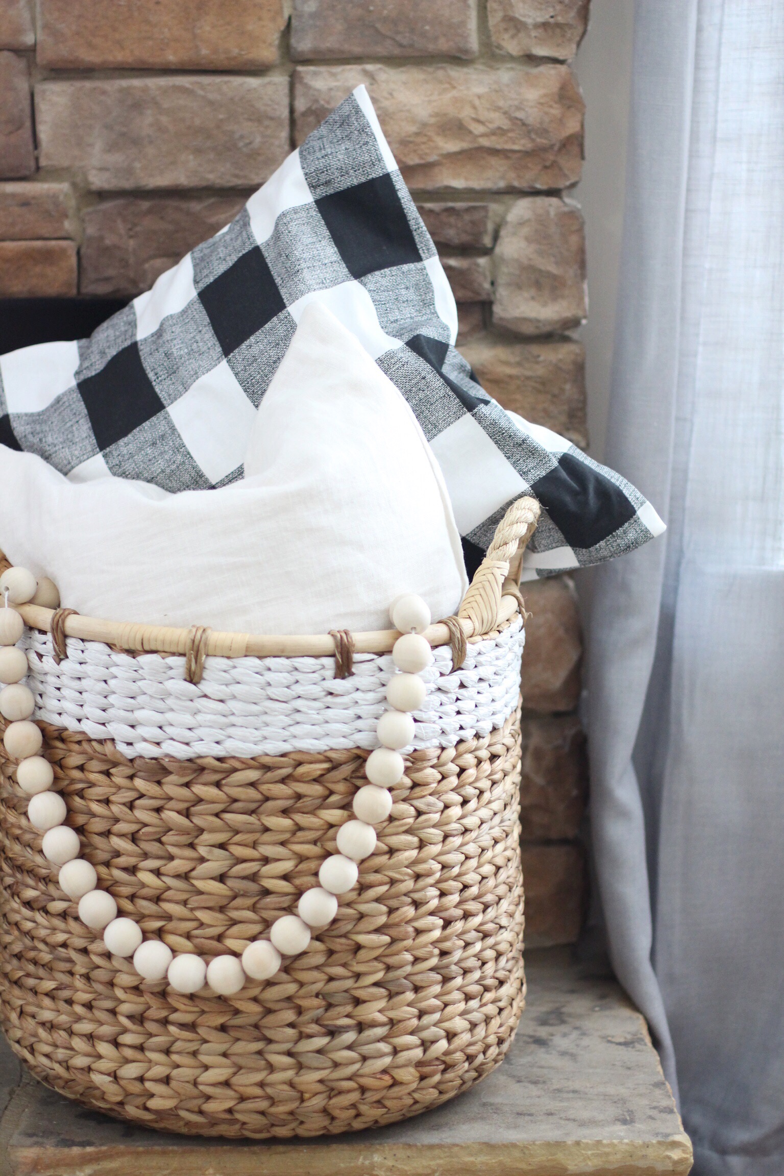 I’d love to have an all white mantel, but this busy mama does not have time for that kind of DIY project quite yet! In the meantime, I wanted to add pops of creams and whites to help lighten up our stone fireplace. I’ve linked all the shops for you below!